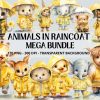 Adorable Animal with Raincoats Clipart, Watercolor Cute Animals with Umbrella Nursery, Rainy Day Safari Woodland in Raincoat Kids Bundle Png