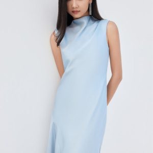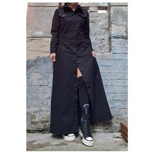 Vintage Charm: Gwen Long Black Dress with Sharp White Collar and Tailored Fit